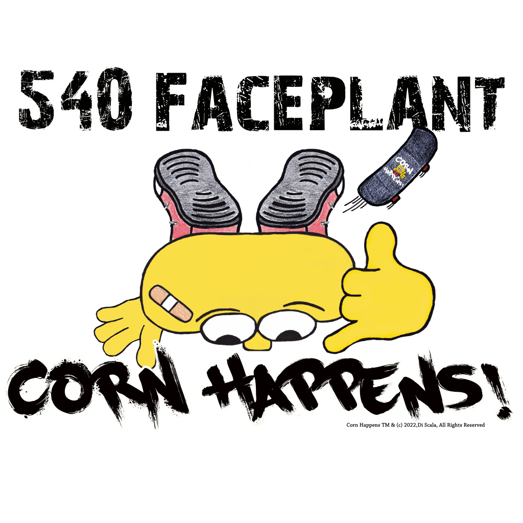 He tries his best but the only trick he can land is a face-plant. He can’t stick any trick to save his skin, but he is a tough kernel and keeps trying. Skater CORNrad never gives up. He skates everyday and has the bruises to prove it.